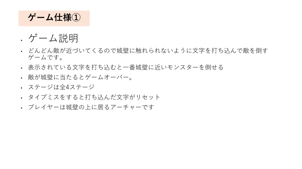 • ゲーム仕様書作成