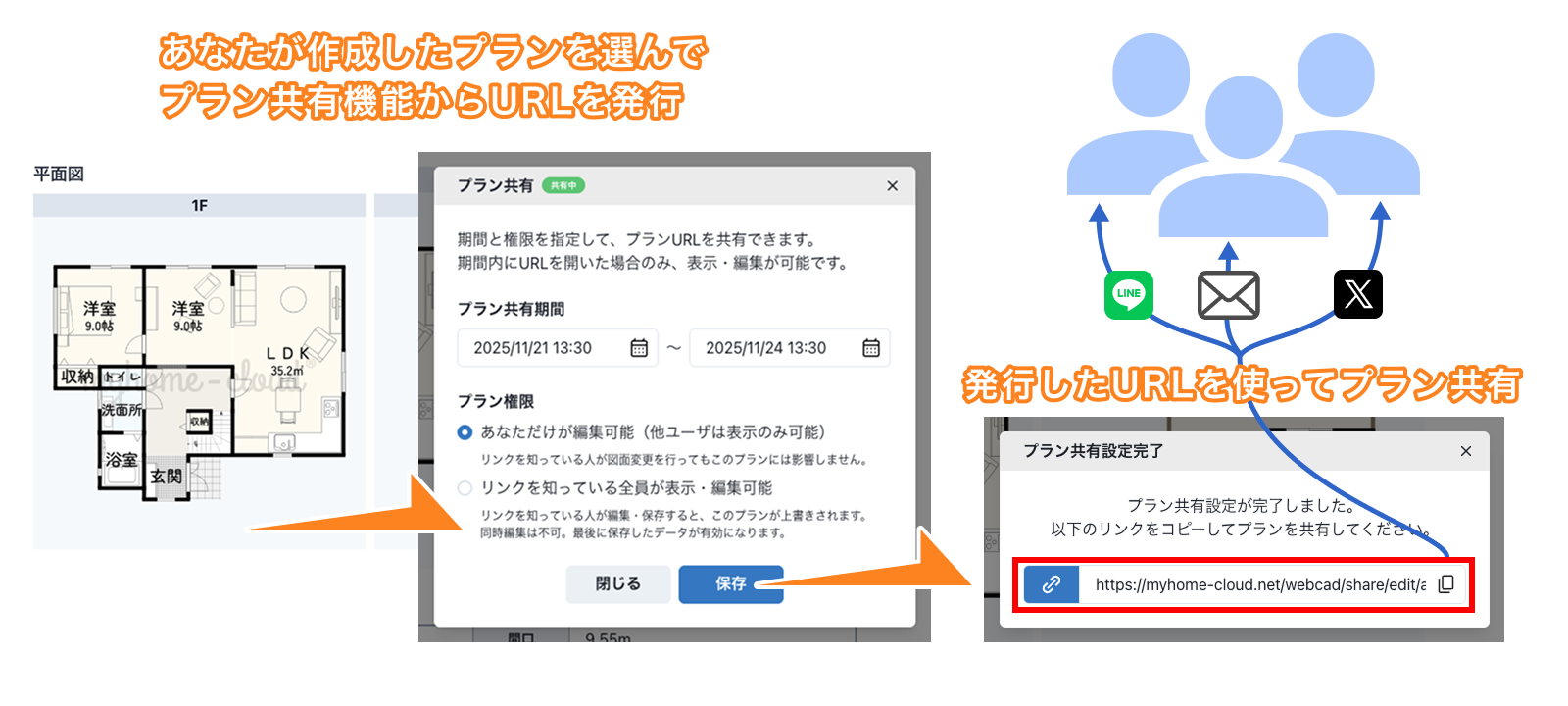 作成したプランを、ご家族とのご相談や、社内・お客様とのやりとりに共有できる機能を追加しました。